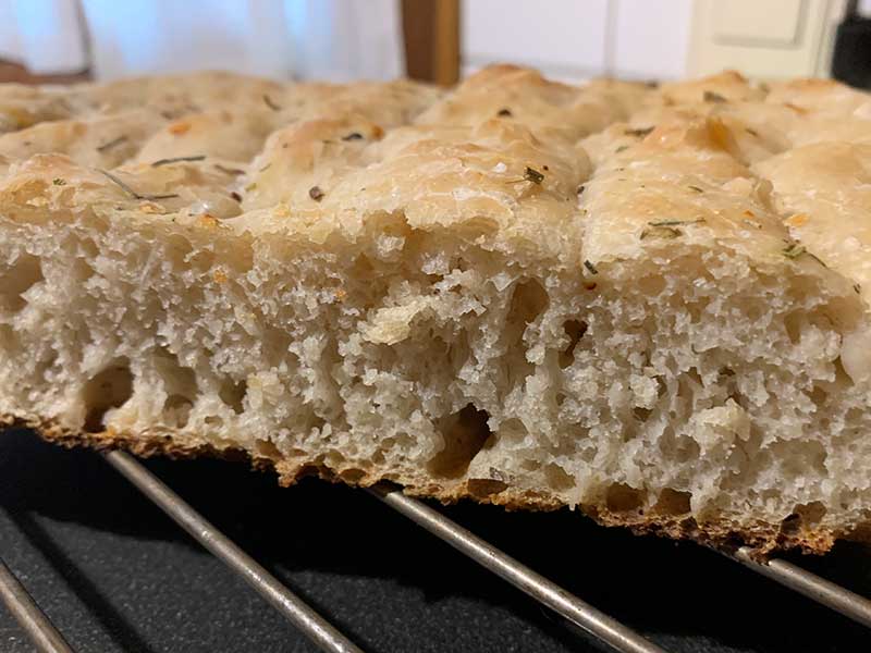 Ahora con los dedos en forma de garra, introducir en la masa uniformemente por toda la superficie, esto infla aún más las burbujas del fermentado.